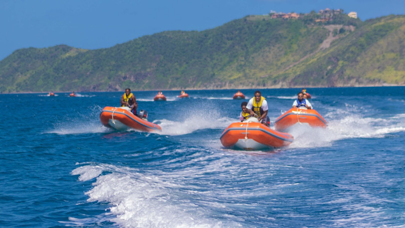 Set sail on a luxurious catamaran, gliding across the turquoise waters of St Kitts & Nevis, and experience a four-hour shore excursion filled with an ideal blend of fun and relaxation