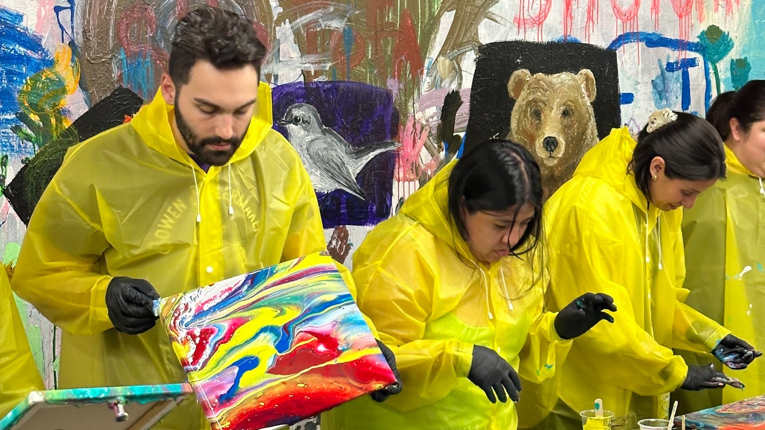 Forget the rules and throw paint at canvases, walls, floors, and even each other in a vibrant 30-minute session where you suit up, grab a 12×16 canvas, and dive into full creative mayhem, perfect for families, friends, or a fun night out