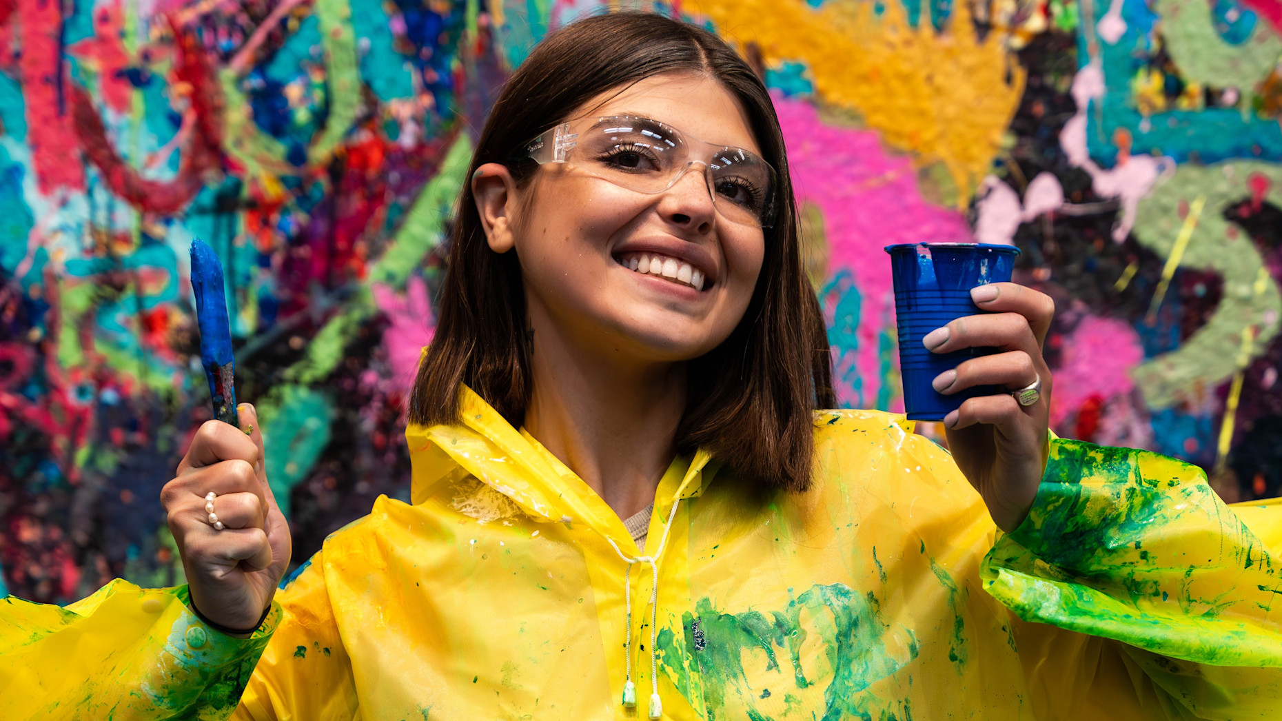Forget the rules and throw paint at canvases, walls, floors, and even each other in a vibrant 30-minute session where you suit up, grab a 12×16 canvas, and dive into full creative mayhem, perfect for families, friends, or a fun night out