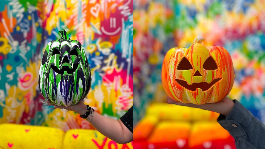 Skip the carving mess and pour your way to Halloween magic as you coat a skull or pumpkin in swirling paint to create a spooky masterpiece, perfect for families, friends, or a creative date night, available for a limited time only