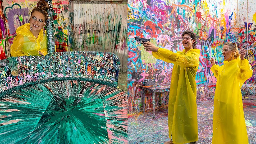 - Fire real BB guns at exploding paint balloons—pure adrenaline meets art