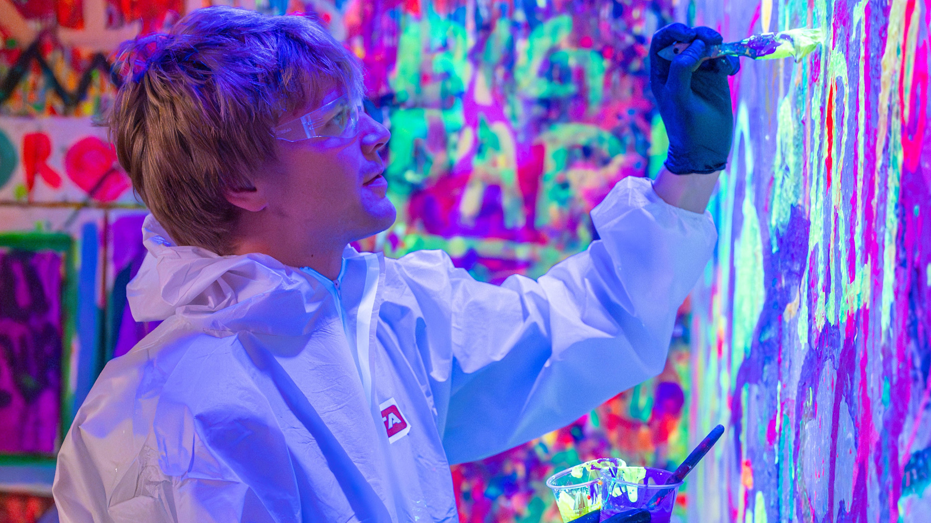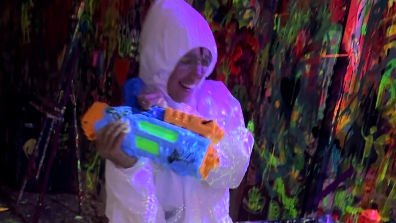 - Glow in the dark chaos—UV lights, neon paint, and no artistic limits