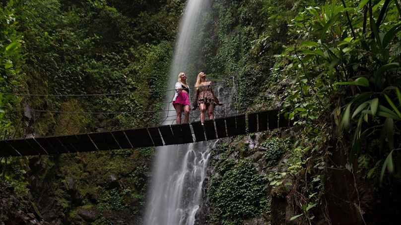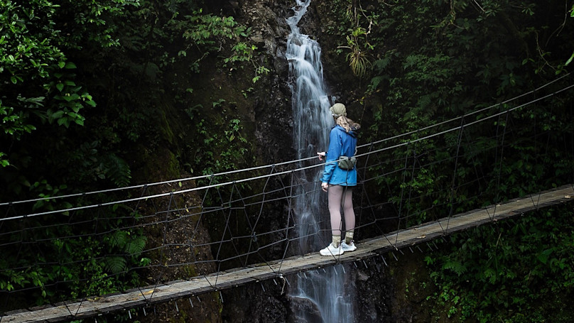 Experience an adventurous half-day tour exploring cloud rain forest’s natural beauty through trekking, waterfall swimming, bridge crossing, forest exploration, and horseback riding