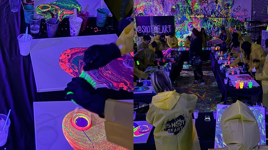 - Shooting & spinning art session under UV blacklights (18+ only)