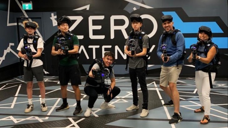 Enter a thrilling sci-fi world with your group and fight killer robots in a high-tech VR environment, complete with gravity-defying action and advanced blasters