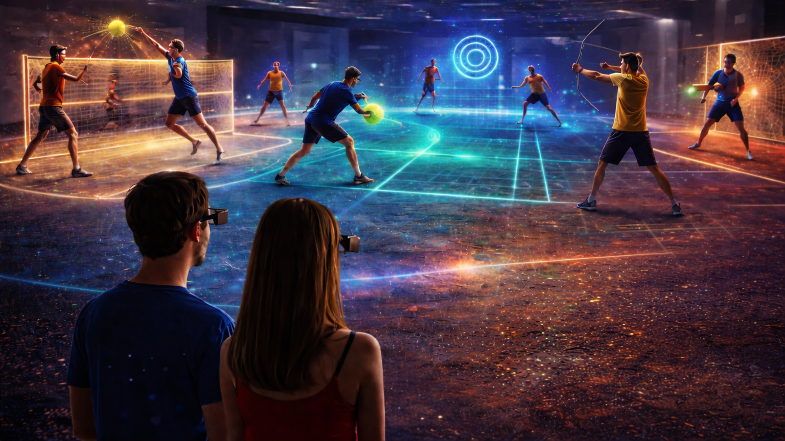 Step into a futuristic hologram room where up to five players compete in interactive sports surrounded by immersive 3D laser visuals, experiencing the thrill of virtual movement and touchless play in one of the world’s most advanced holographic arenas